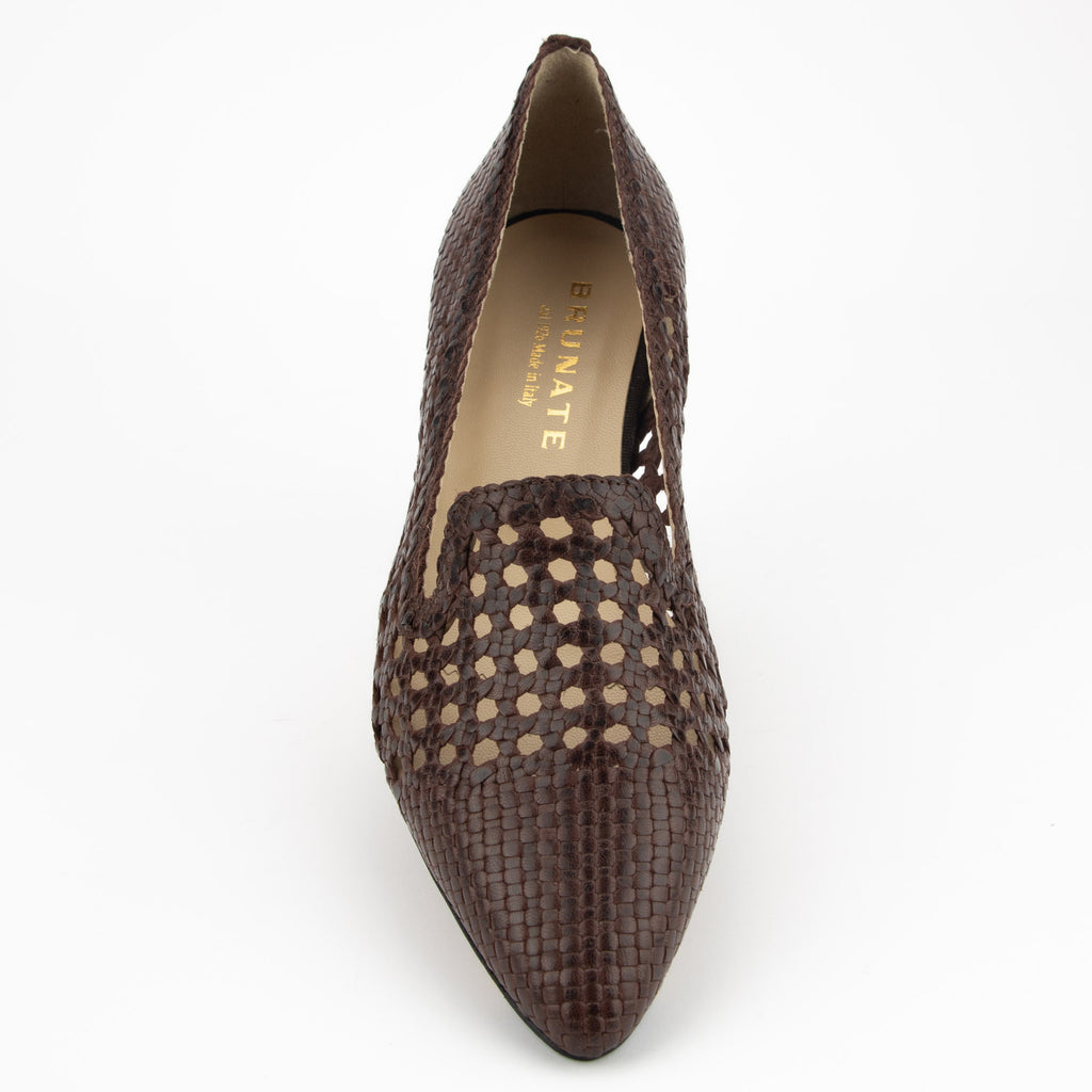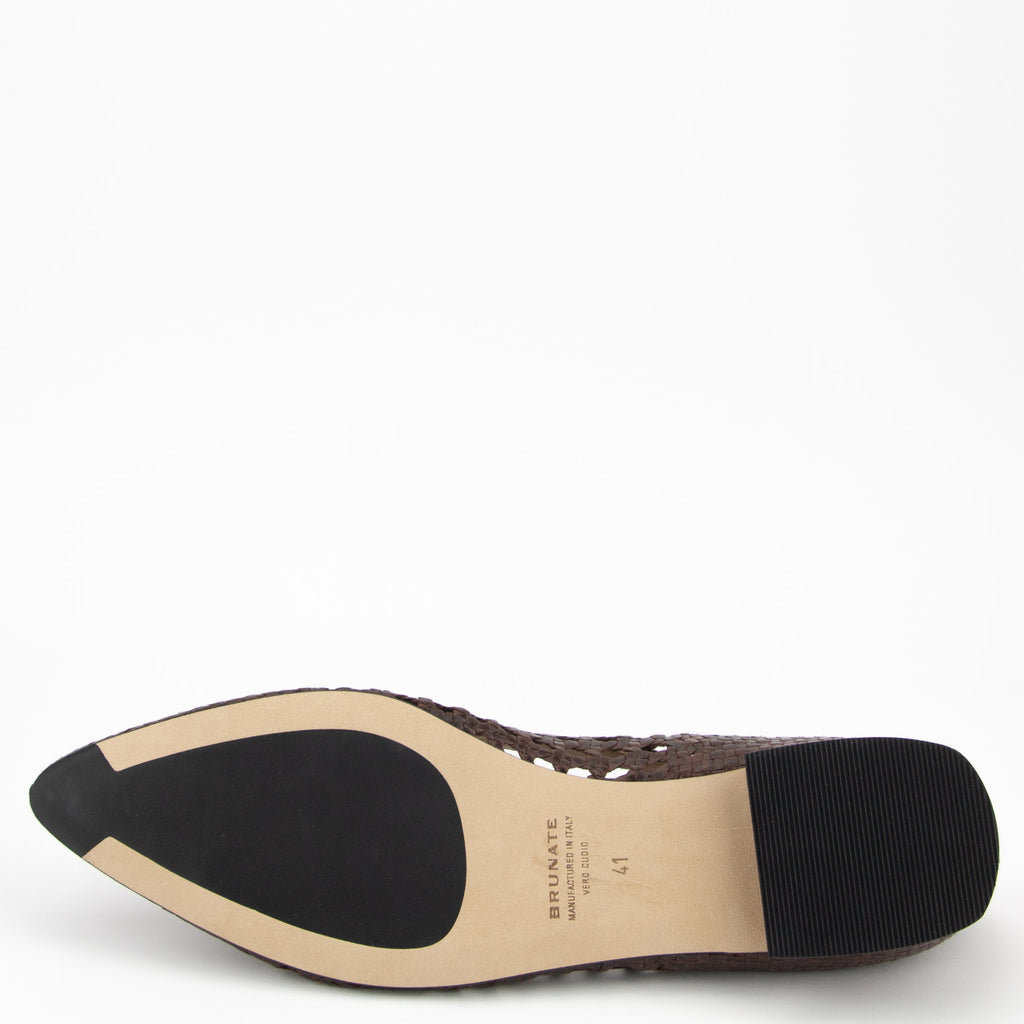 BrunateExquisites Flechtwerk von Brunate in braun Nappaleder. "Artiginale" (handgemacht) dieser spitze Slipper und zeigt was die italienische Kunst der Schuhfertigung kann. Eine Freude für alle Schuhliebhaber*innen.