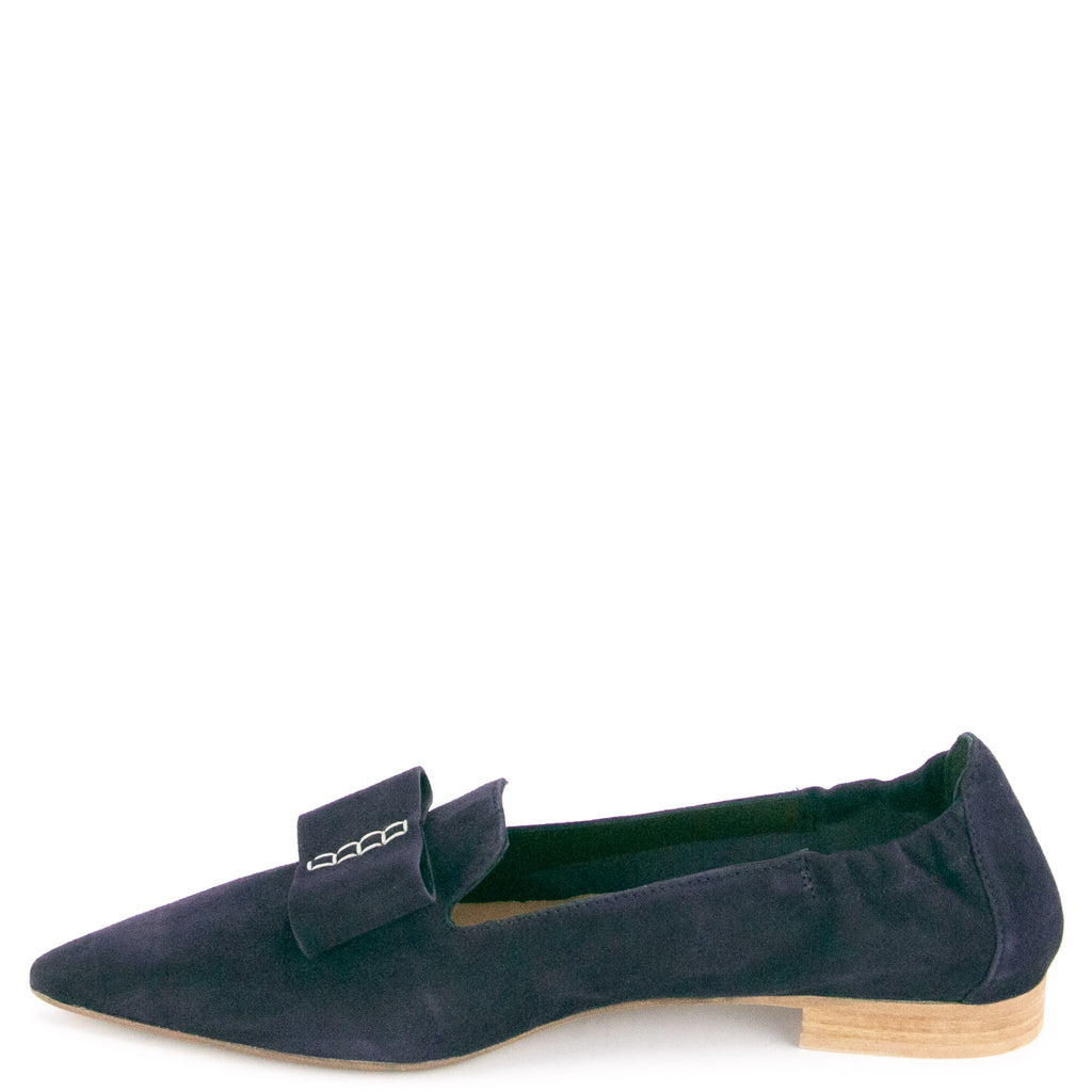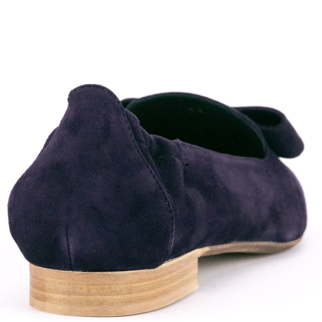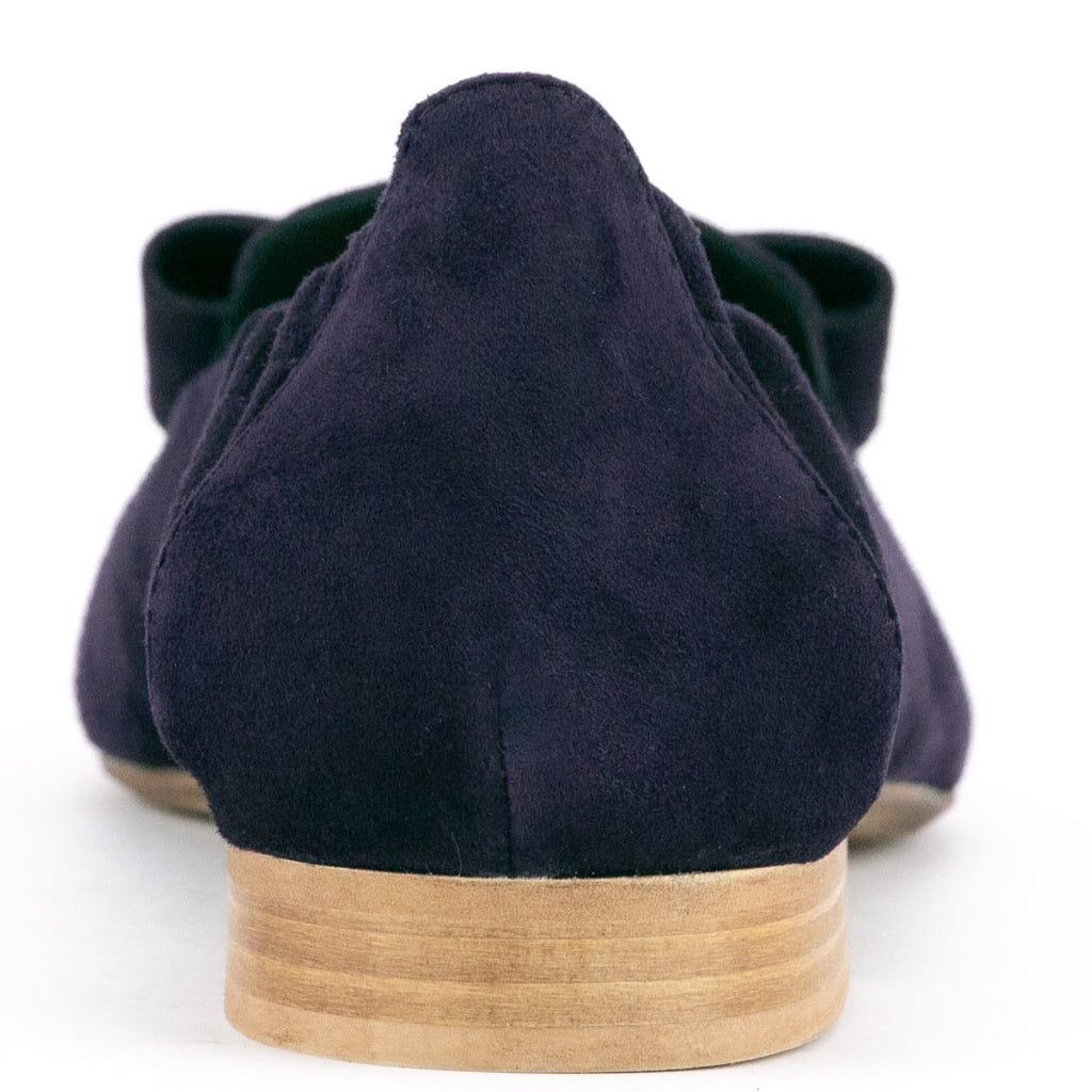 Donna Carolina"Spitze mit großer Lederschleife" für den dunkelblauen Slipper in Veloursleder von Donna Carolina. Sommerlich aber doch angezogen sind Sie mit diesem Schuh.
