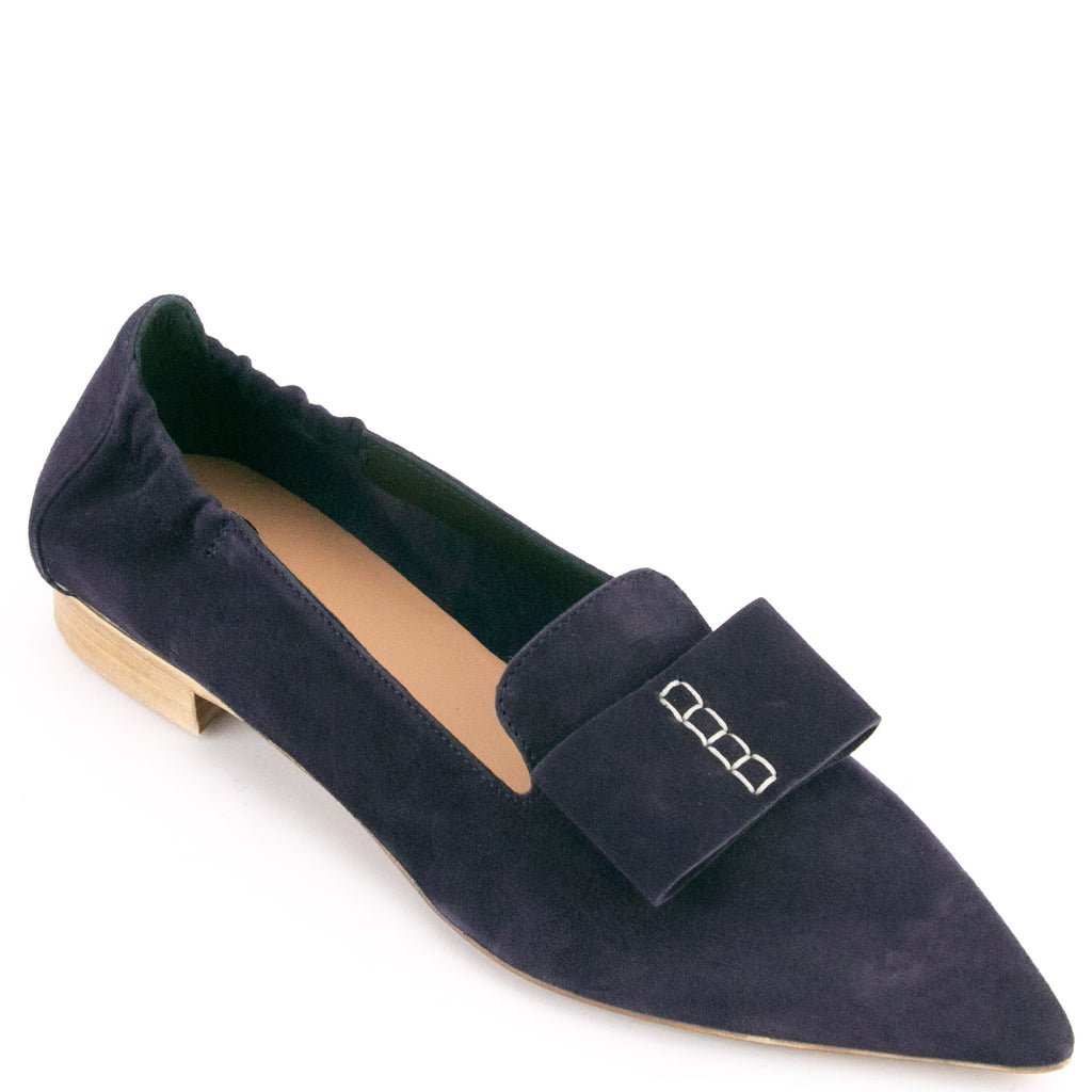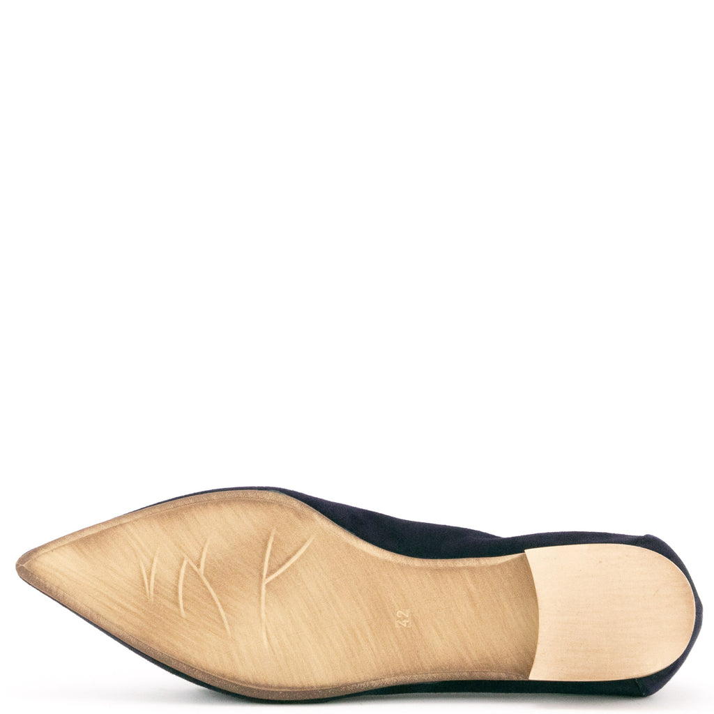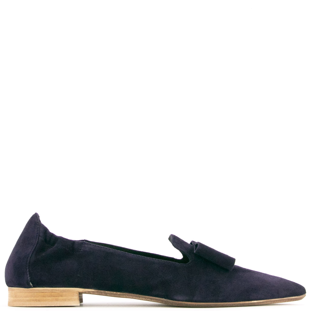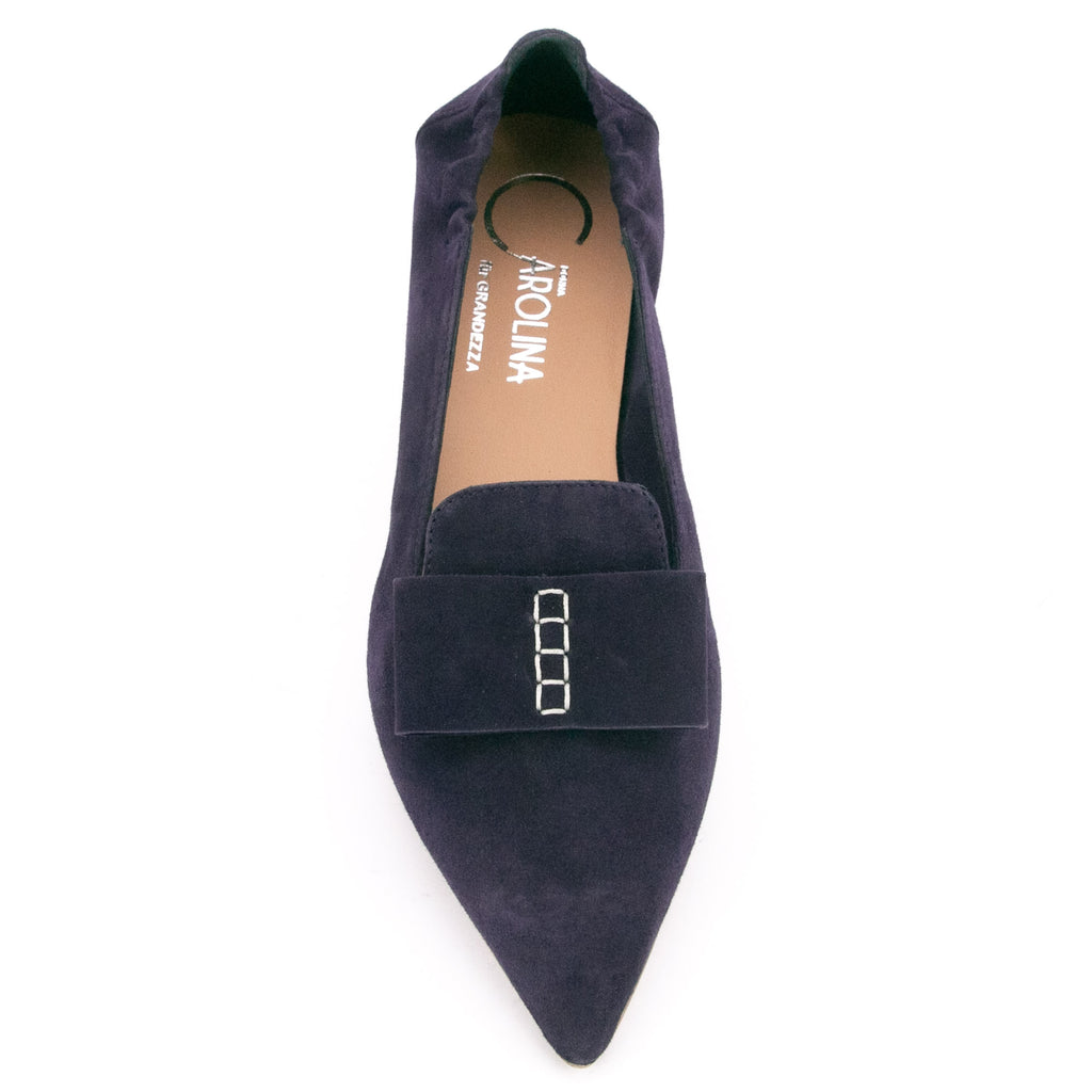 Donna Carolina"Spitze mit großer Lederschleife" für den dunkelblauen Slipper in Veloursleder von Donna Carolina. Sommerlich aber doch angezogen sind Sie mit diesem Schuh.