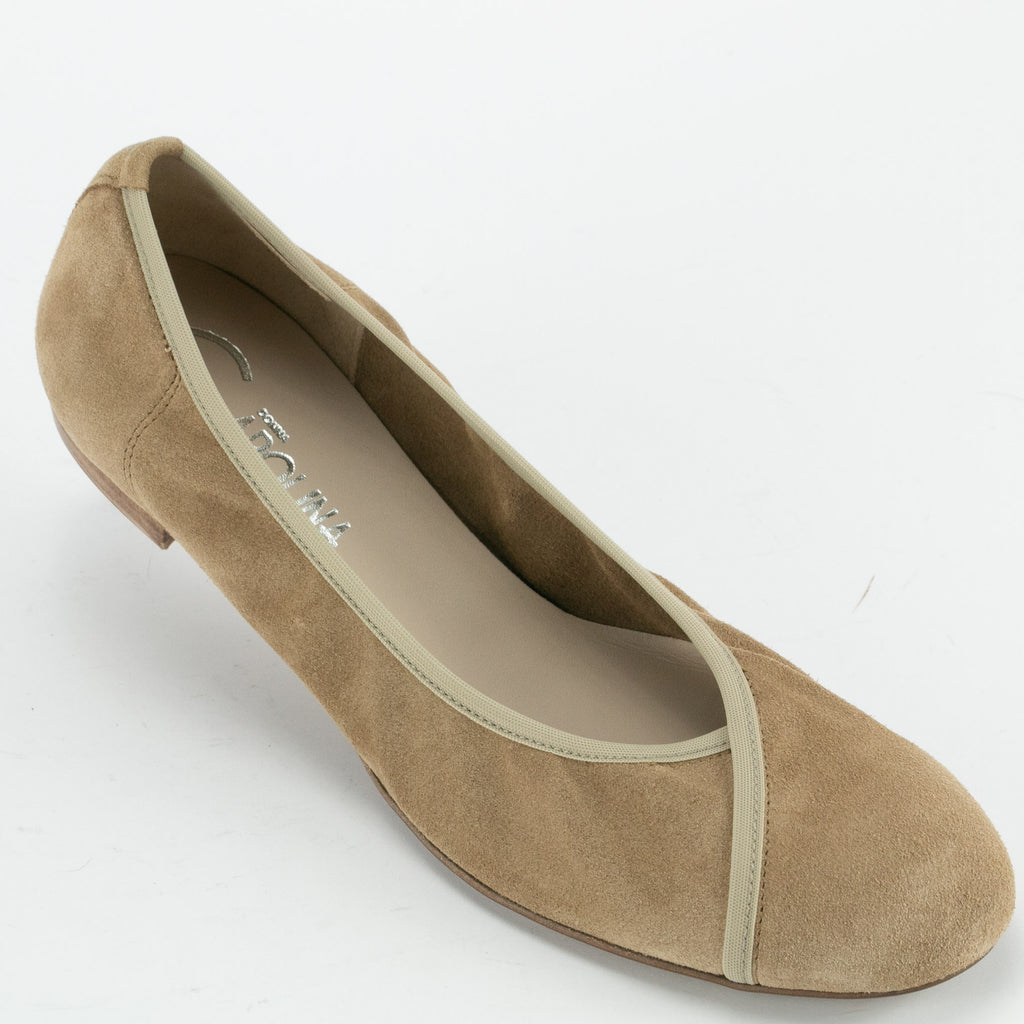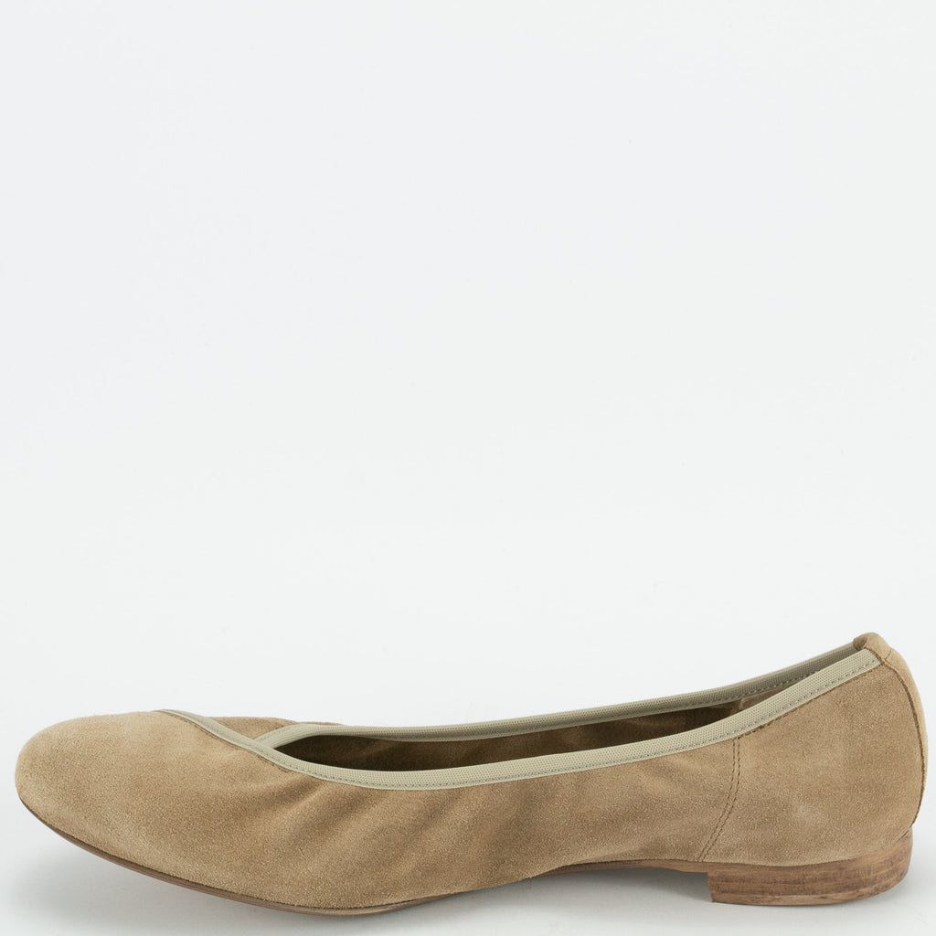 Donna CarolinaDie Ballerina in Veloursleder sand-beige geht auch mal ganz ohne Schleife.