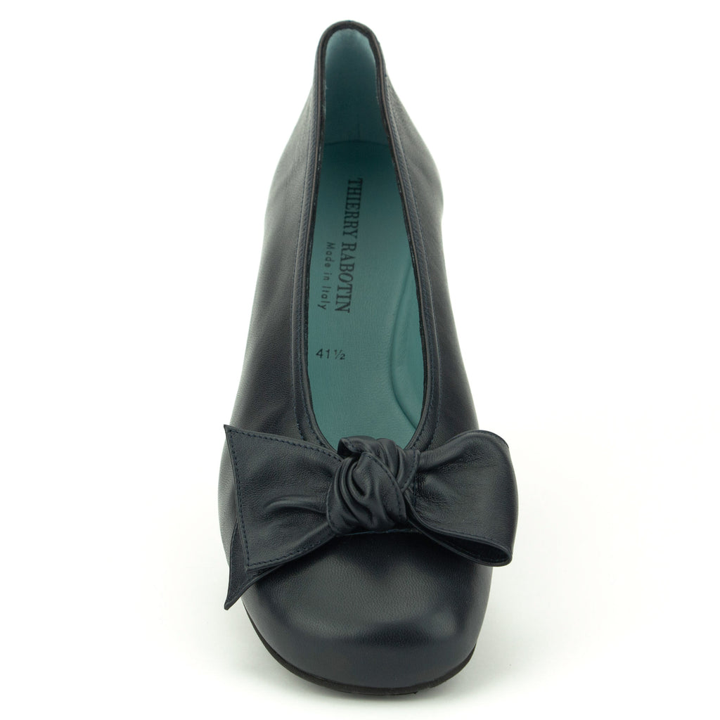 Thierry RabotinCECIL heißt die Ballerina von Thierry Rabotin mit der großen Lederschleife. In dunkelblau Nappaleder .Natürlich ist auch dieser Schuh in Sacchetto gearbeitet. Mit der Absatzhöhe von 3cm ist der Keilabsatz immer bequem.