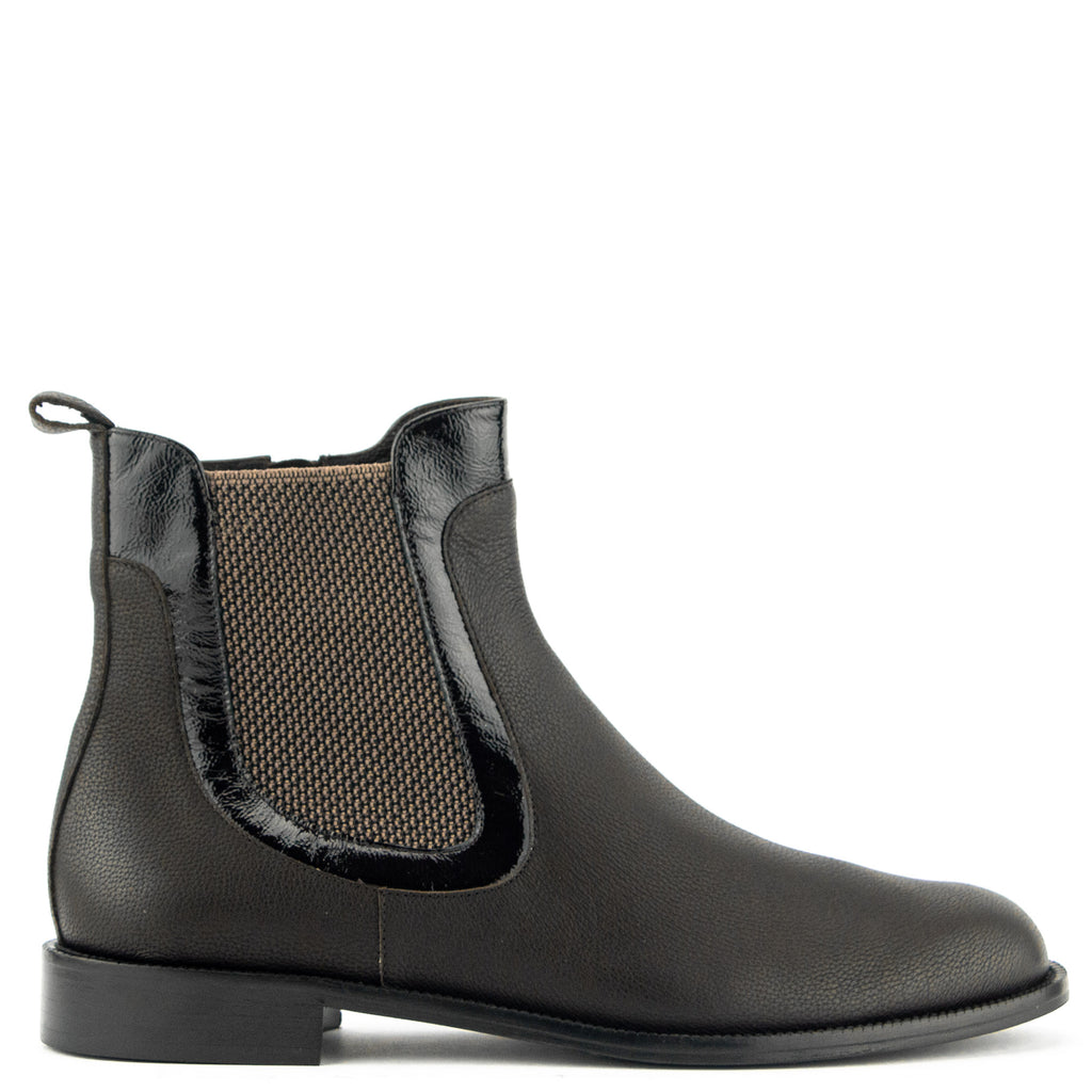 Alba TeciDer Chelseaboots in dunkelbraun Nappaleder kommt aus der Toscana. Die Einfassung des 2farbigen Stretcheinsatz ist in schwarz Lackleder ausgeführt und unterstreicht das tolle Design für diese exquisite Stiefelette..