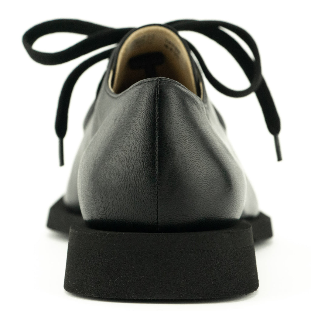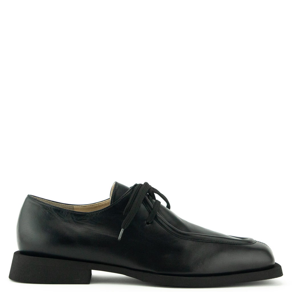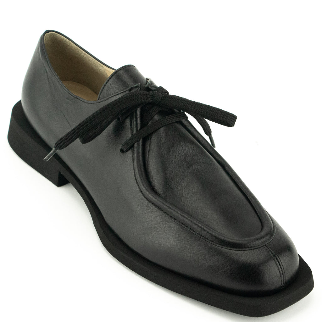 BrunateStylish ist der Schnürschuh in schwarz Nappaleder von Brunate aus Italien. Die kantige und weiche Porosohle und der ausgestellte Absatz (3cm) setzen das geradlinige Design fort.