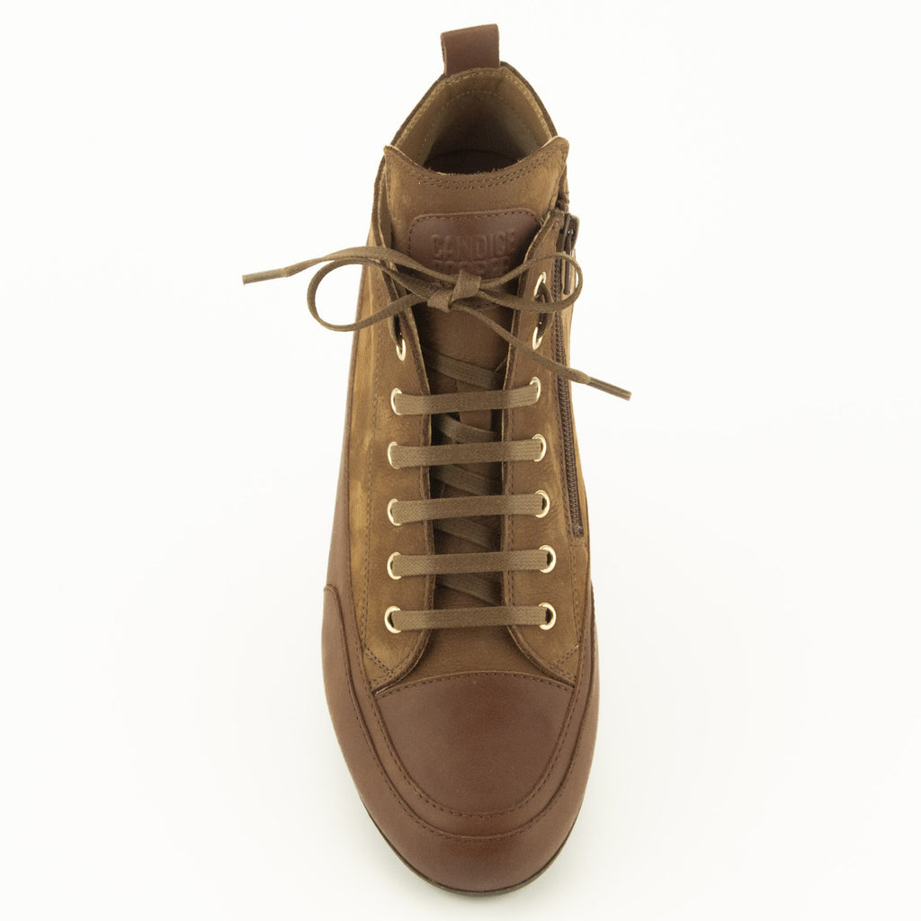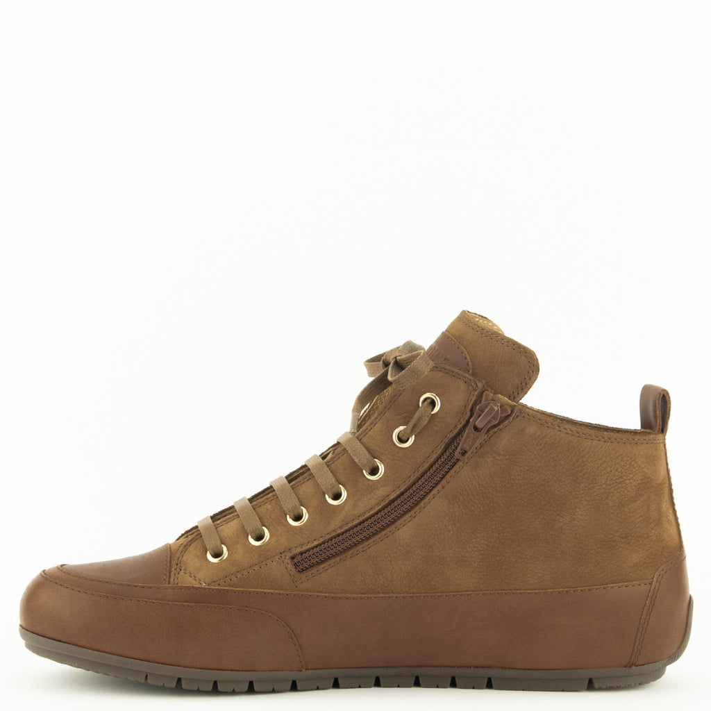 Candice CooperDie lässige Kombination des Sneakerboots in cognac braun Veloursleder und dem Sohlenrahmen in farblich abgestimmt Vitello macht diesen Sneaker so besonders attraktiv. Die breiten Bänder und die goldfarben Metallösen für die Schnürbänder fügen sich harmonisch in das Design ein. Angenehm ist auch die weich gepolsterte, herausnehmbare Innensohle für Ihre eigene Sohle.