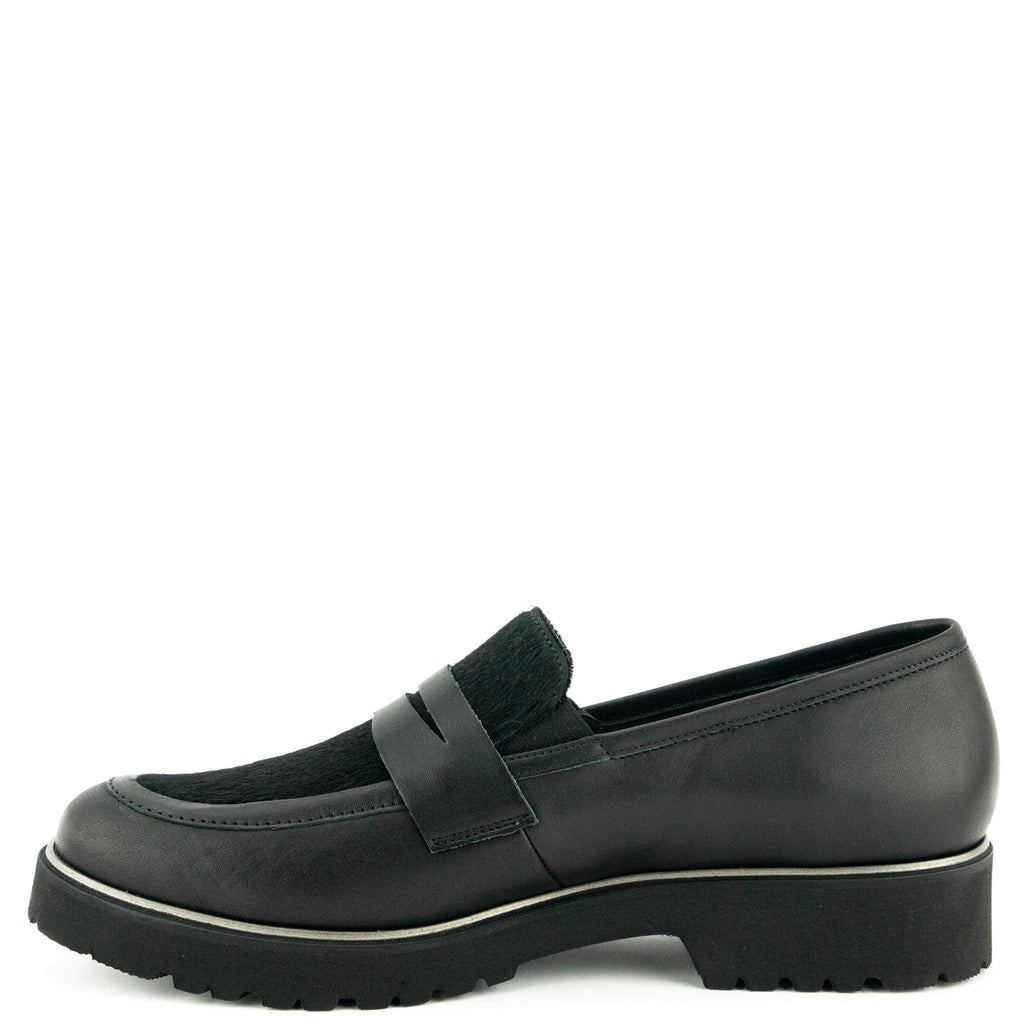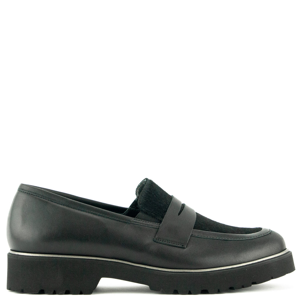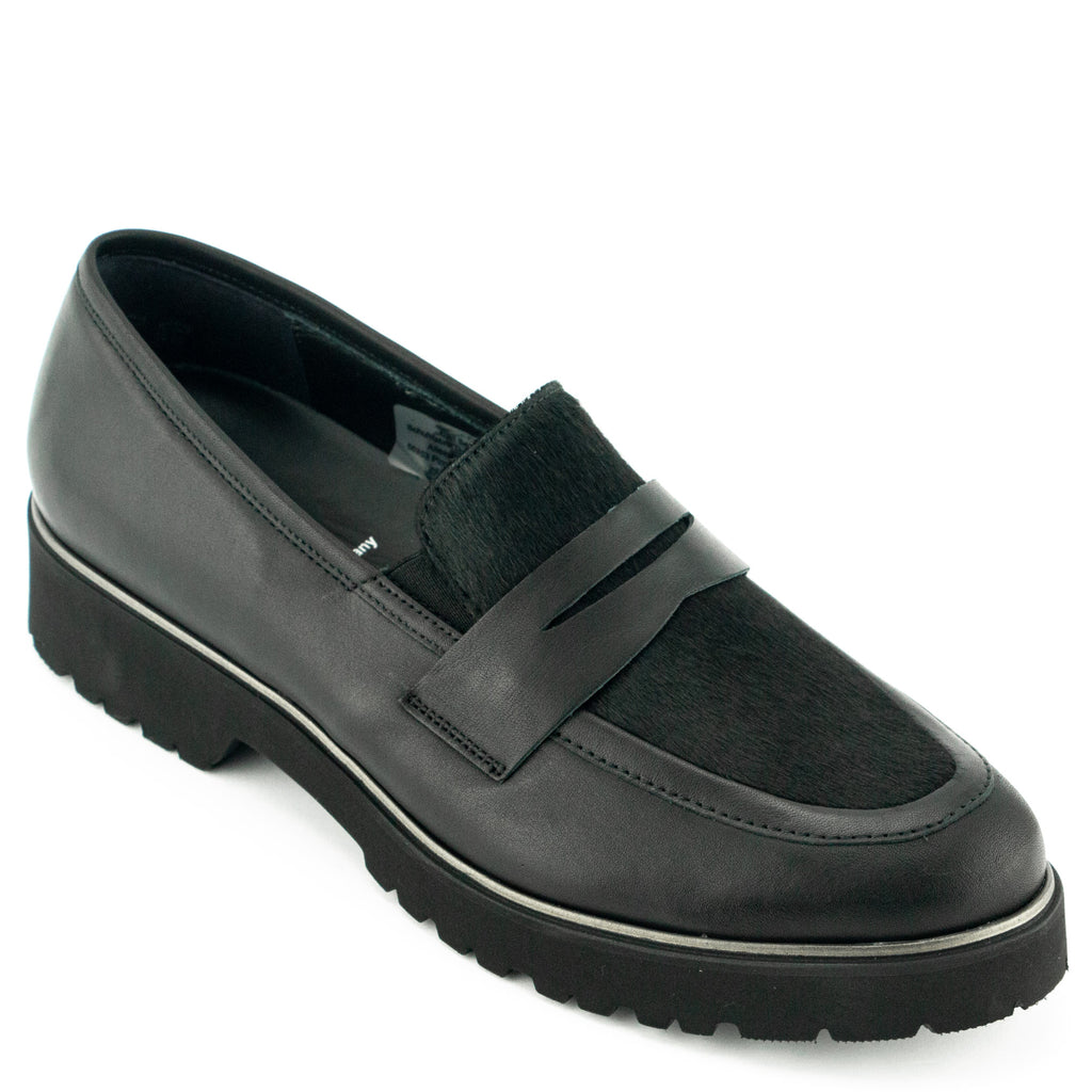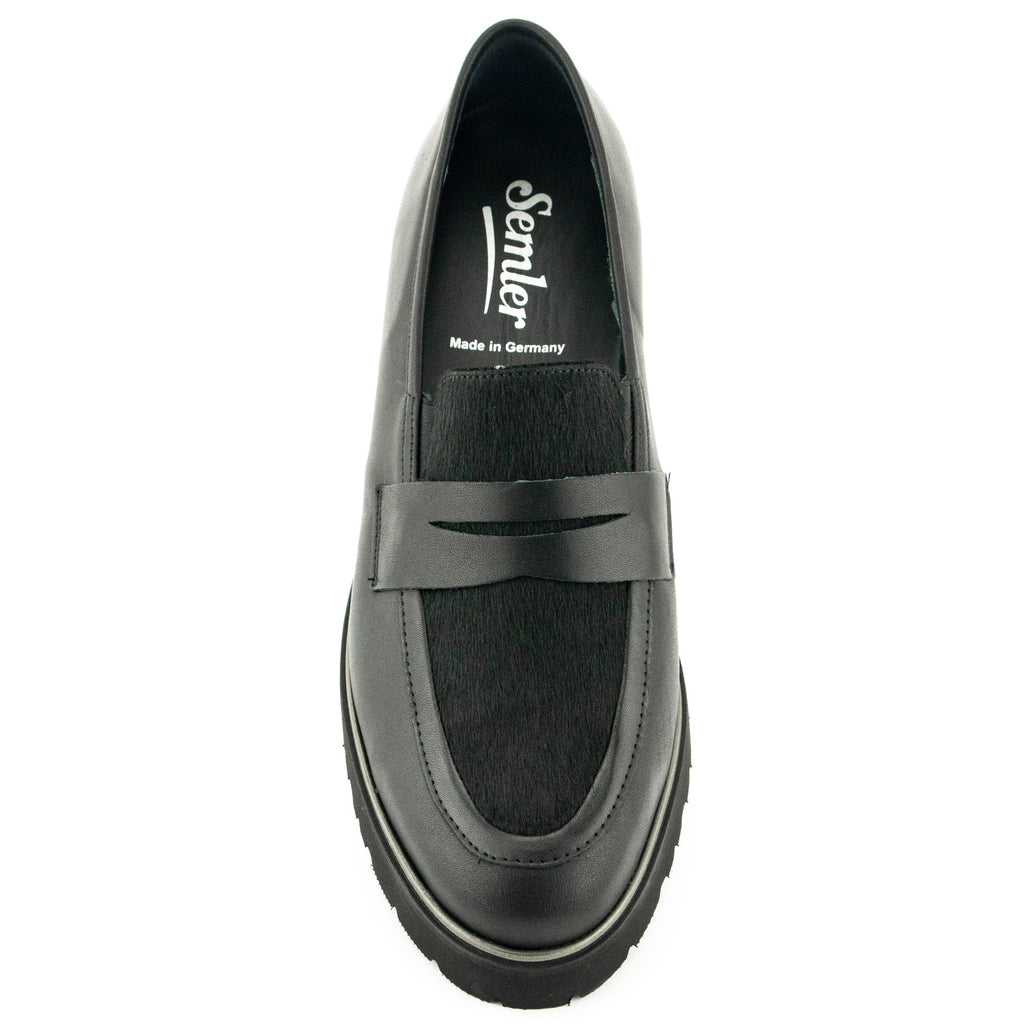 SemlerFür die kühlen Tage die Slipper in schwarzem Leder und einer silbernen Paspel wirkt der Schuh leicht trotz kräftiger Sohle. Einen lässigen Akzent setzt das schwarze Fellblatt. Wie immer bei Semler haben die Schuhe ein Wechselfussbett.