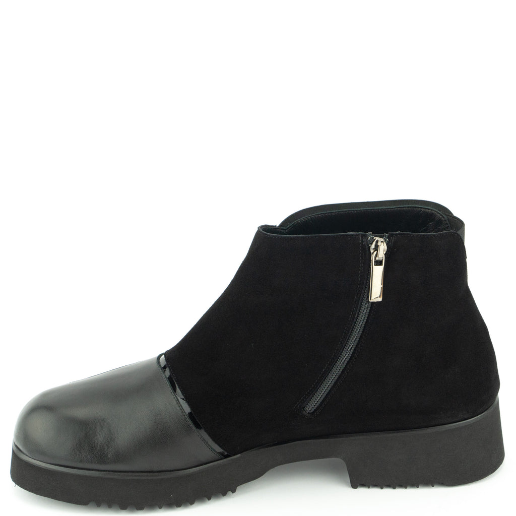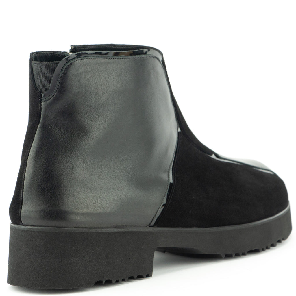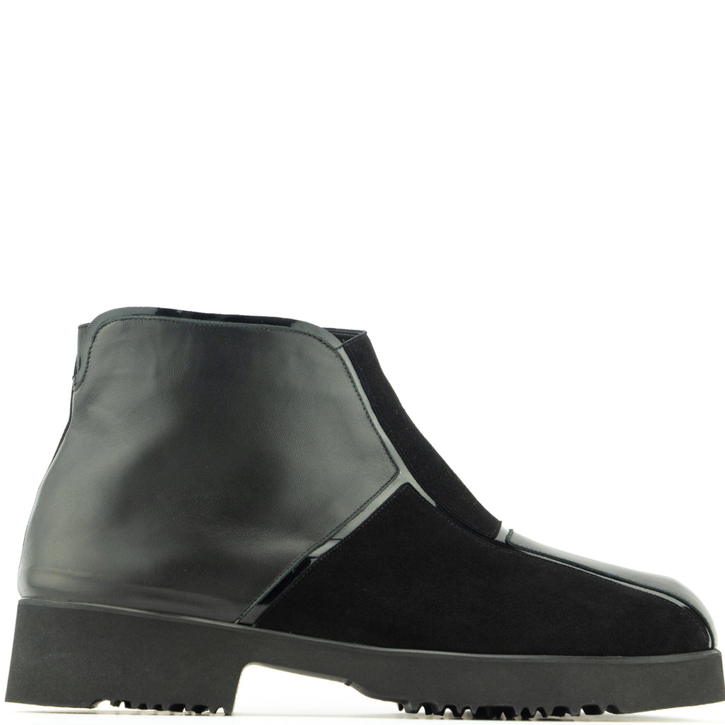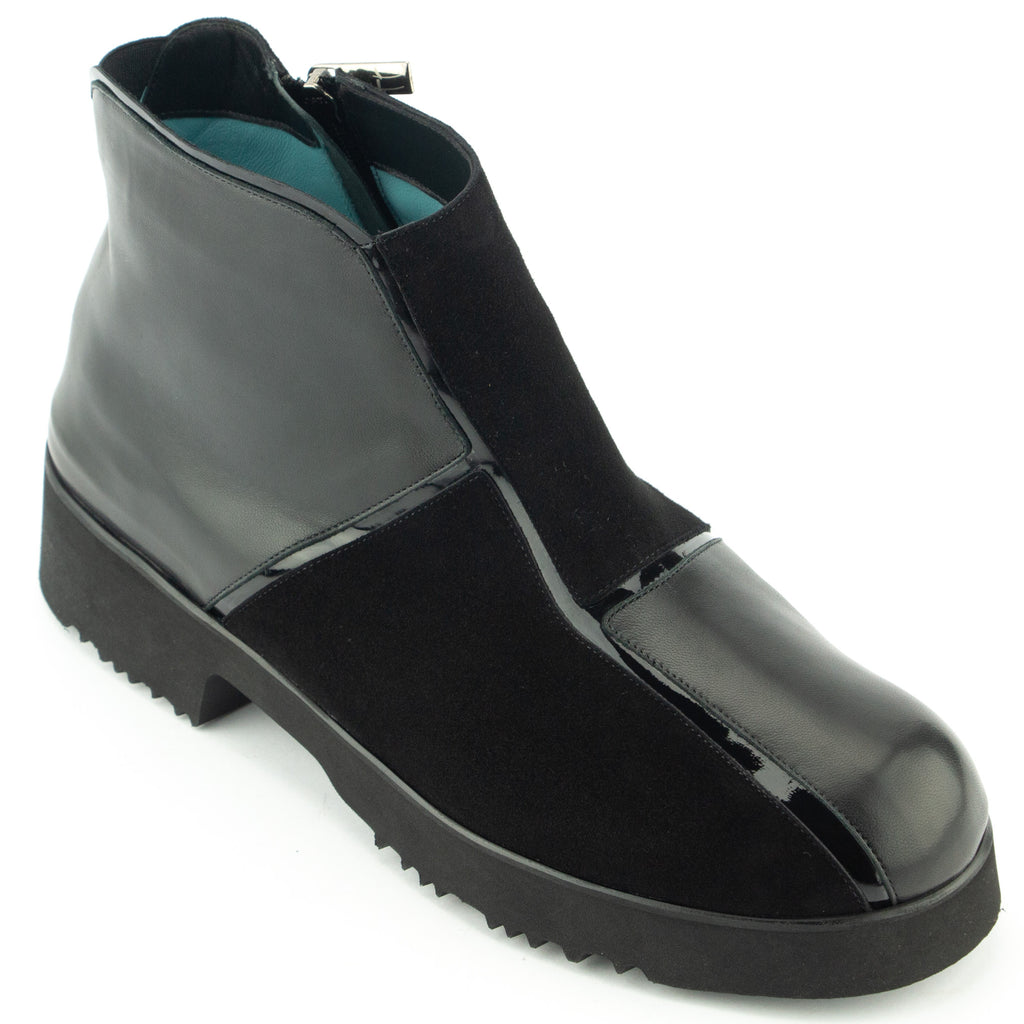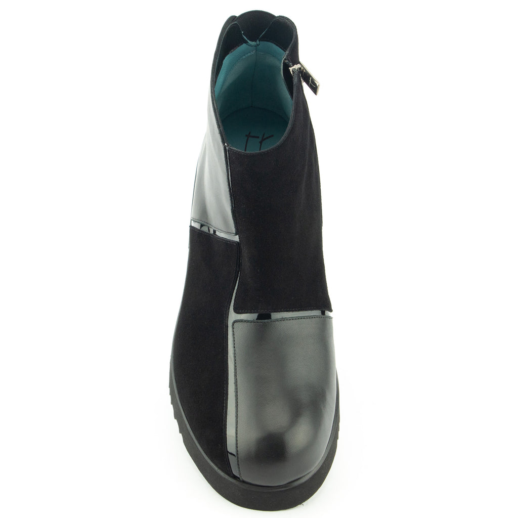 Thierry RabotinLässig die Stiefelette im Pattern Look in schwarz, ein Mix aus Nappa/Velours/Lackleder. Die Profilsohle in Poroschaum garantiert den ultraleichten Auftritt.