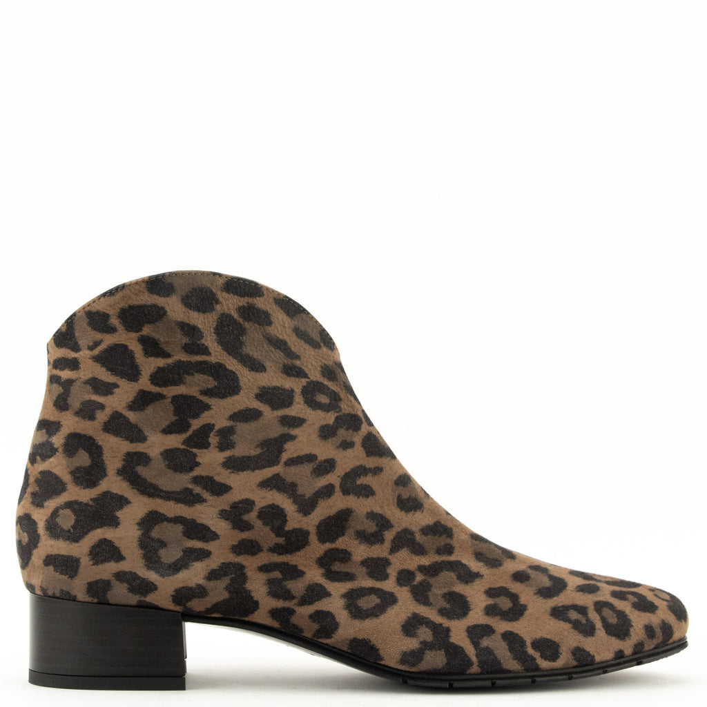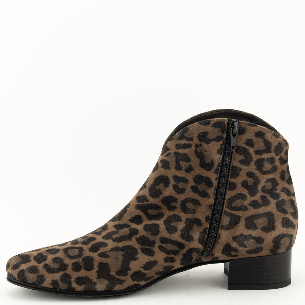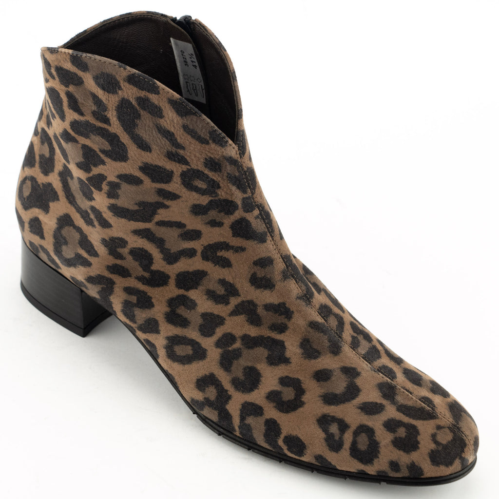 Die klassische Stiefelette von Brunate im modischen braun Leoprint  in Veloursleder ein  Look der ob zu Kleid od.Anzug immer passt. Die kleine Absatzhöhe von ca.3cm ist  perfekt und unkompliziert für jede Gelegenheit.