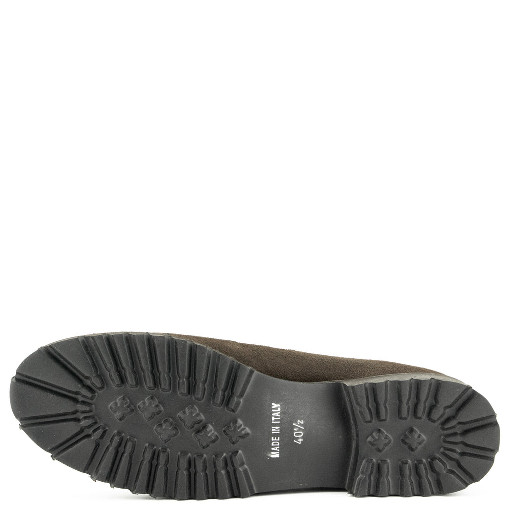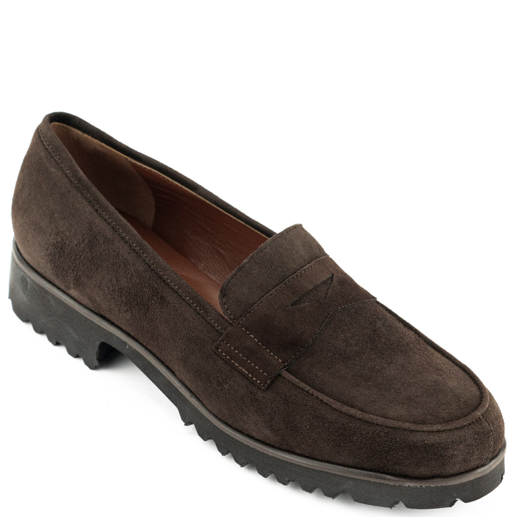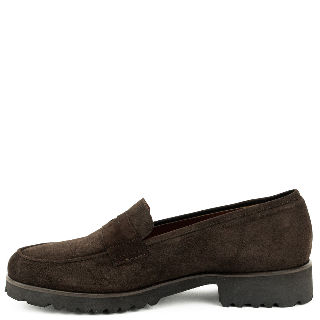 Helen MKlassisch ist der Loafer aus feinem Veloursleder in braun mit der dicken Profilsohle. Besonders schön, ein unverzichtbarer und universeller Begleiter sowohl zur Hose aber auch zu Rock und Kleid.
